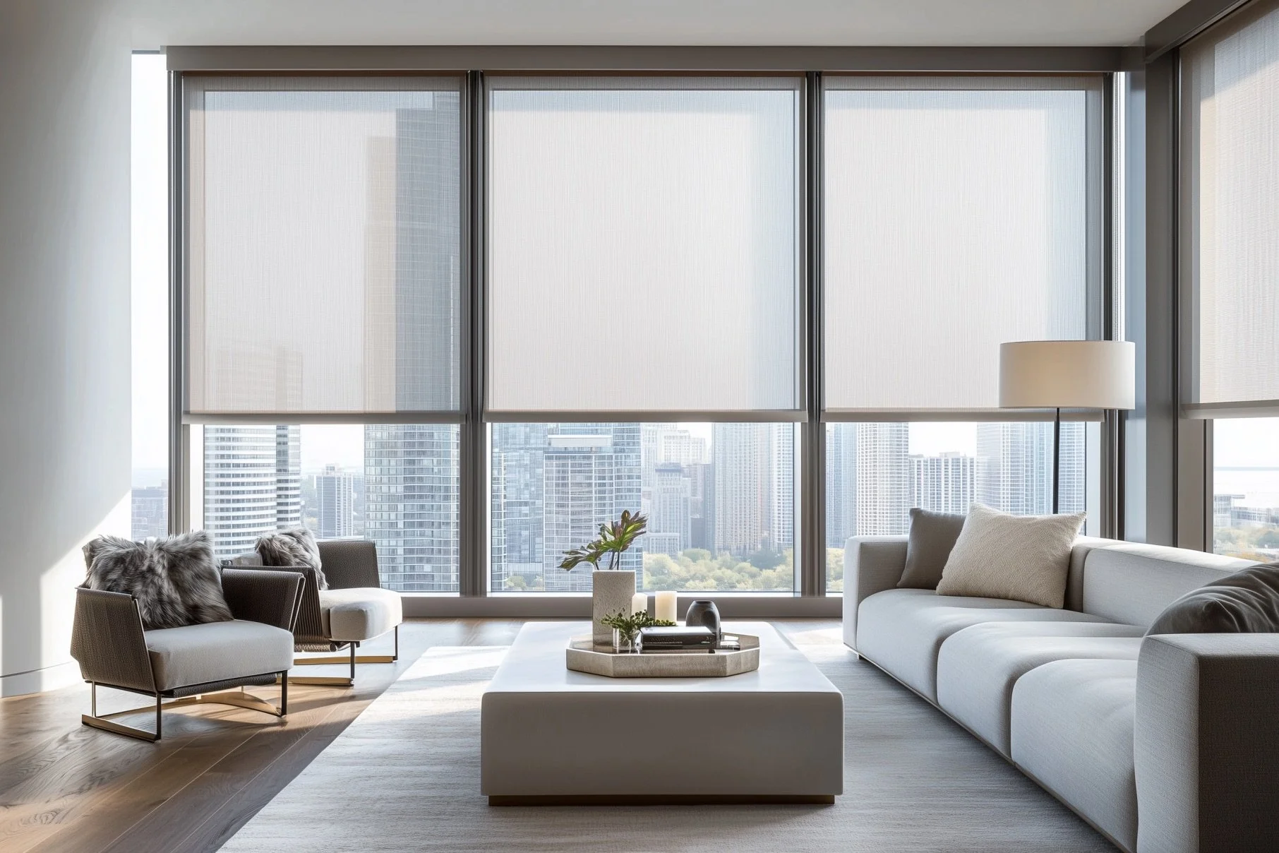 Solar shades for view-preserving sun control, roller shades for a crisp, minimal finish—guided by design from consult to install.